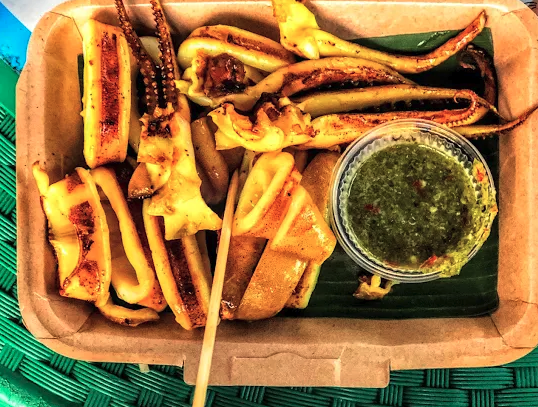 Moo Ping (Grilled Pork Skewers): Sweet, savory, and slightly smoky. These are the perfect snack to eat while you walk.