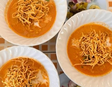 The Broth (น้ำแกง): This is the heart and soul. It should be rich, creamy, and deeply flavorful, but not overly heavy or greasy. You're looking for a perfect balance of coconut milk, red curry paste (often with turmeric and ginger for that distinct Northern Thai aroma), and a subtle sweetness from palm sugar, balanced by savory fish sauce. It should have a gentle warmth from chili, but not be overwhelmingly spicy. The color is usually a vibrant reddish-orange.