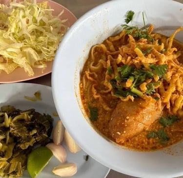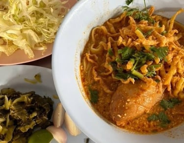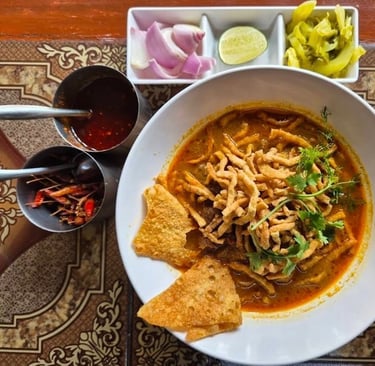 Vibe: Tucked away in a quiet alley near Wat Khuan Khama, "Grandma's Khao Soi" feels like a secret find, despite its popularity. It’s a simple, open-air spot, often with a friendly cat lounging nearby.