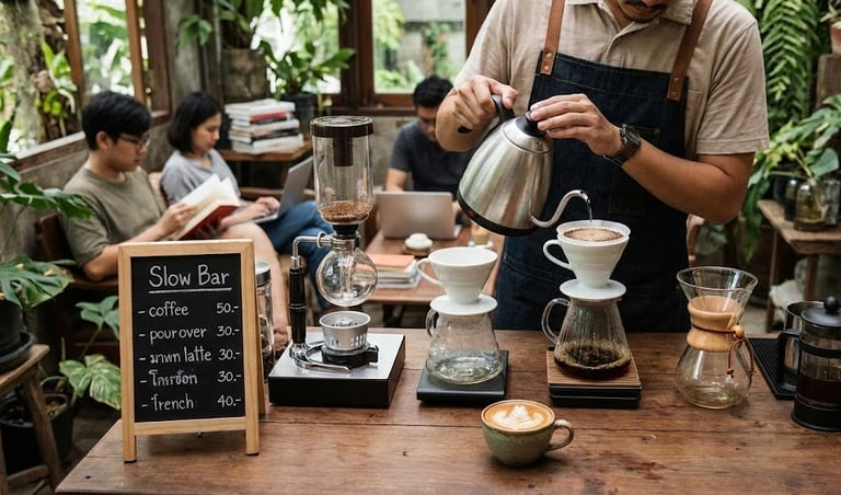 2. The "Slow Bar" Movement Chiang Mai has embraced the art of slowing down. A "Slow Bar" is a cafe—or often just a table under a tree—that doesn't have an espresso machine. Everything is manual.