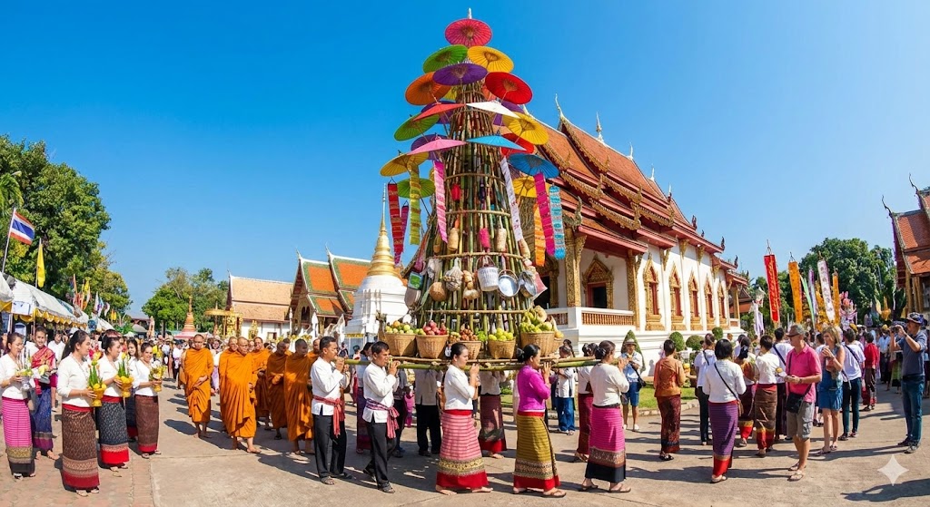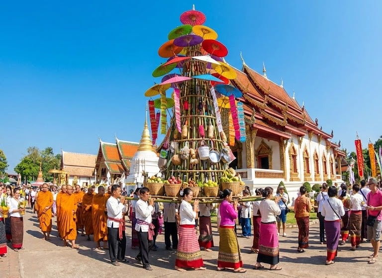 The Experience: Walking into the temple courtyard feels like walking into a Dr. Seuss book. The towering, brightly colored Salak Yom trees are breathtaking. The festival includes parades where these giant structures are carried through the streets, accompanied by traditional music and dancing. It is a photographer’s dream and a brilliant display of community dedication.