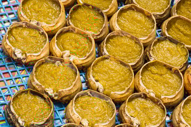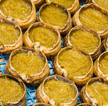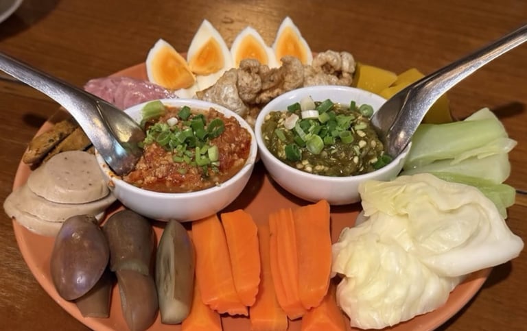Ong Pu (อ่องปู): This is the holy grail of Northern appetizers. It is a rich, creamy field crab paste mixed with egg and grilled in the crab's shell. It tastes like a savory, umami-packed custard. You dip a ball of sticky rice into it, and it melts in your mouth.