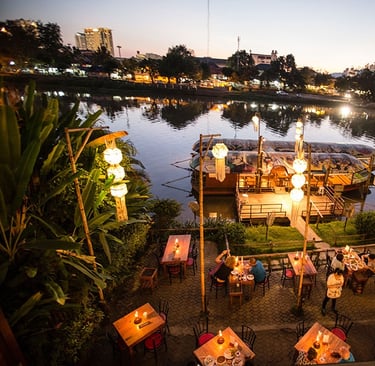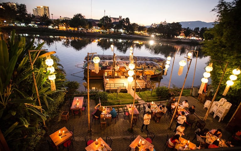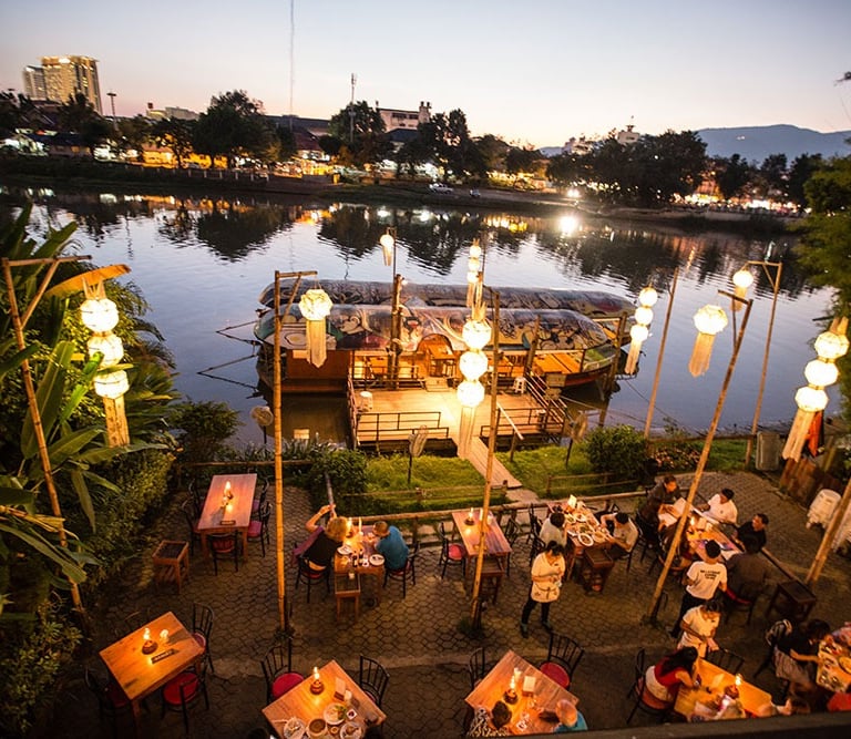 The Experience: Located right on the Ping River, this massive wooden structure serves food, but the real draw is the live bands. They play a mix of classic Western rock (think Eagles and Beatles) and Thai hits. It is loud, lively, and always packed.