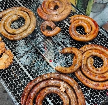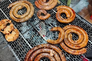 This is the "Chiang Mai Sausage," and it's a flavor explosion. It’s a coarse-ground pork sausage packed with an incredible array of fresh herbs and spices—you'll taste lemongrass, kaffir lime, galangal, and chili. It's grilled over charcoal until smoky and sizzling. You’ll see it in long, beautiful coils. They will snip off a piece for you, and it’s often served with raw ginger and cabbage.