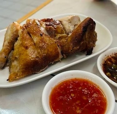 Gai Yang: Grilled chicken. Marinated in a savory-sweet sauce and grilled slowly until the skin is crispy and the meat is juicy. The combination of the spicy-sour salad, the savory chicken, and a side of sticky rice is one of the all-time great Thai meals.
