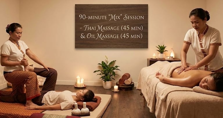 For our clients returning from Mae Taeng, we recommend a specific approach that blends Traditional Thai Massage with Deep Tissue Oil techniques.