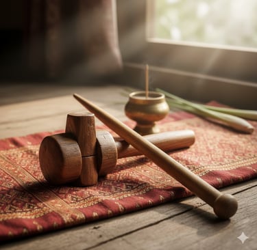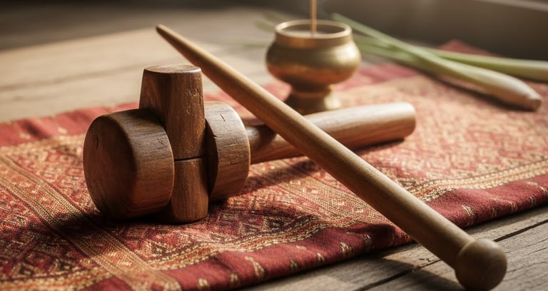 The Technique: The therapist uses a special wooden hammer (kon) and a wooden chisel (lim). These tools are traditionally made from tamarind wood that has been struck by lightning, believed to hold charged energy.