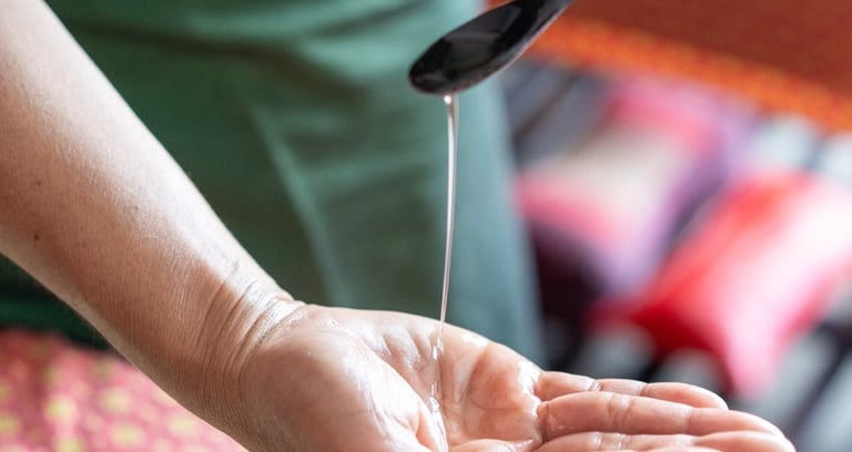 The strokes are long, sweeping, and fluid. While Thai massage uses compression (pushing down), Oil massage uses gliding friction. It focuses on the muscles rather than the energy lines.