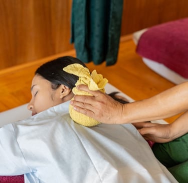 Thai Herbal Compress: The heat from the herbs helps relax muscles that have been clenched in the "riding position" all day.