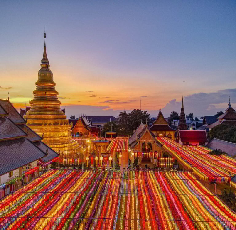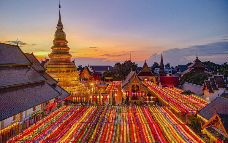 Discover Lamphun, the ancient Hariphunchai kingdom. A perfect day trip from Chiang Mai featuring golden temples, longan noodles, and history.