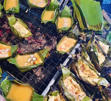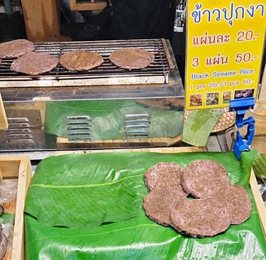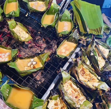 Moo Ping (Grilled Pork Skewers): Sweet, smoky, and addictive. Often eaten with a small bag of khao niao (sticky rice).