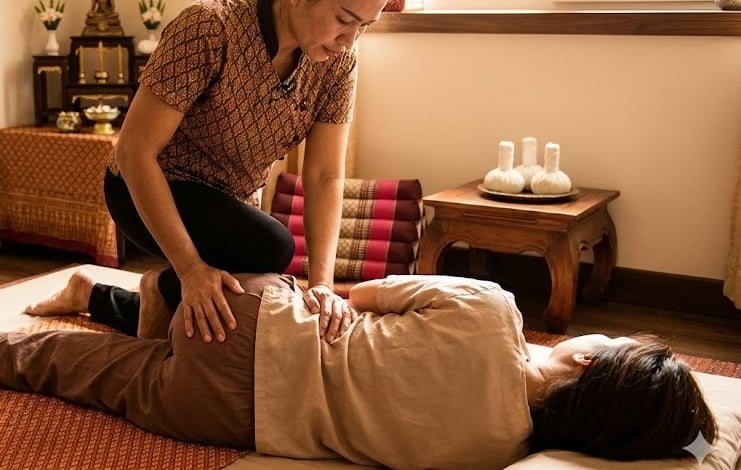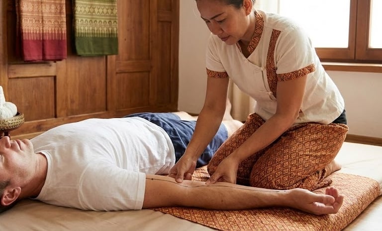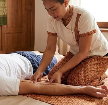 Thai Massage for the Hips: Traditional Thai massage is exceptional for opening the hips. Using assisted stretching techniques, we can gently release the Psoas muscle and hip flexors that were shortened by the harness. We use our feet and body weight to apply deep pressure to the glutes, restoring circulation to the legs.